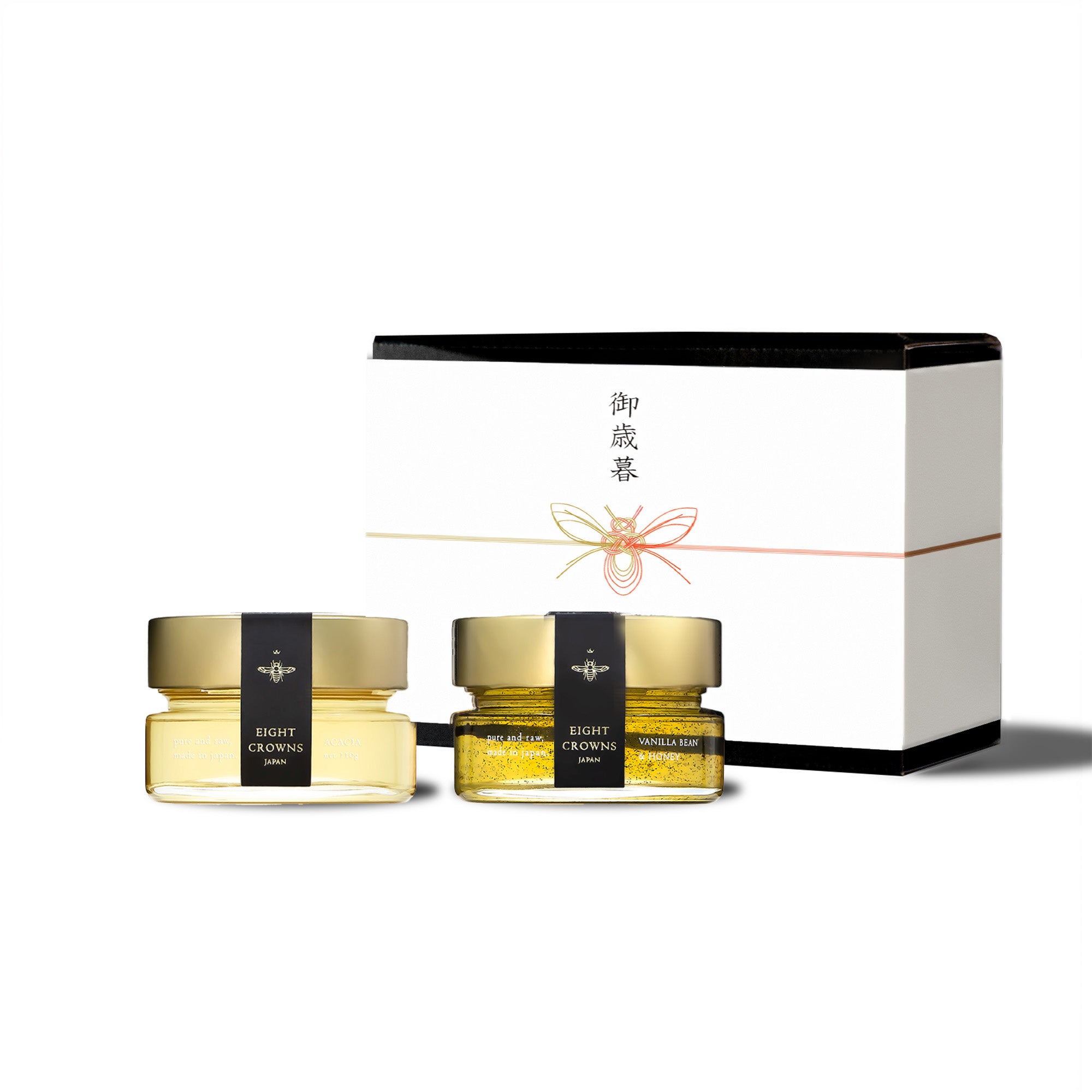 アカシアにバニラの香りを閉じ込めた生はちみつのセットです。