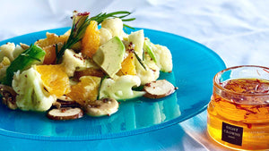 カリフラワー、アボガド、 オレンジとマスタードの サフランハニードレッシング